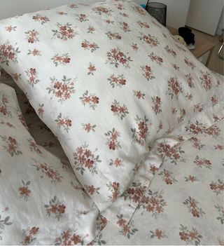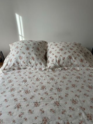 Funda nórdica de Zara Home con un bonito estampado floral. - Diseño con flores en tonos rosas y detalles verdes. - Tejido suave y agradable al tacto. - Cojines 60x60 (regalo los rellenos, también son de Zara)