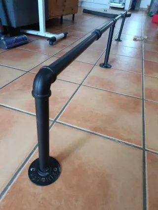 Barra de pared de metal, ideal para colgar ropa o como pasamanos. - Diseño moderno y resistente. - Acabado en color negro mate. - Fácil instalación en la pared. - 175 aprox largo 30 ancho