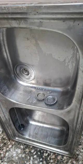 Fregadero de dos senos de la marca Thor. - Fabricado en metal. - Color plateado.