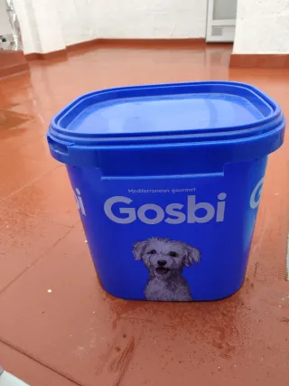 Práctico cubo para almacenar pienso de mascotas. Su diseño es robusto y fácil de transportar. Medidas 38 x 38 x 38cm - Color azul vibrante. - Tapa de cierre seguro. - Incluye imagen de un perro. Medidas