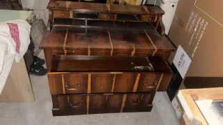 Aparador vintage con mármol y espejo a juego, una pieza elegante y con mucha presencia. Fabricado en madera maciza, con bonitos detalles clásicos, amplios cajones y armarios laterales para almacenaje. La tapa es de mármol y el espejo original completa el conjunto, ideal para salón, comedor o recibidor. Mueble robusto, decorativo y funcional, perfecto para amantes del estilo clásico/vintage. 📐 Medidas: • Mueble: 136x85cm • Espejo: 120x136cm