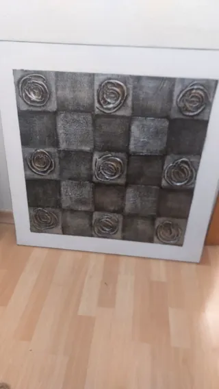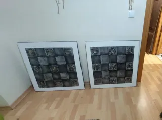 Dos cuadros decorativos con un diseño moderno y elegante. Perfectos para añadir un toque de estilo a cualquier estancia. - Diseño a cuadros con detalles en relieve. - Combinación de colores oro y gris.
