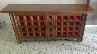 Mueble de madera maciza años 70 con terciopelo roj