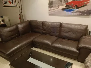 Sofá esquinero de piel chocolate