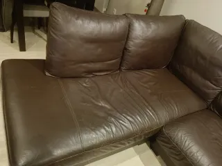 Sofá de dos plazas con un diseño moderno y confortable. Su tapicería le da un toque elegante a cualquier sala. - Tapicería de piel. - Color marrón. - La única condición es que se tiene que ocupar de venir a buscarlo el comprador - el sofá de largo mide 2 metros 10 cms