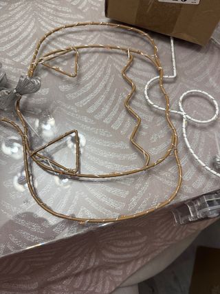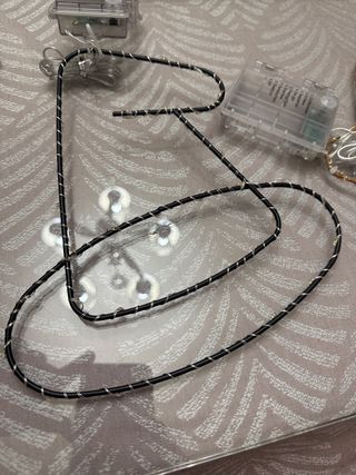Conjunto de lámparas decorativas con un diseño moderno. - Cableado en color negro. - Detalles en alambre plateado. - Cajas de pilas de plástico transparente.