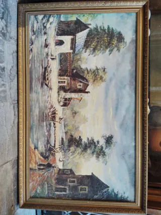 Este cuadro presenta un diseño de silueta con un fondo de cielo azul y nubes. - Marco de madera. - Cristal protector. 5€
