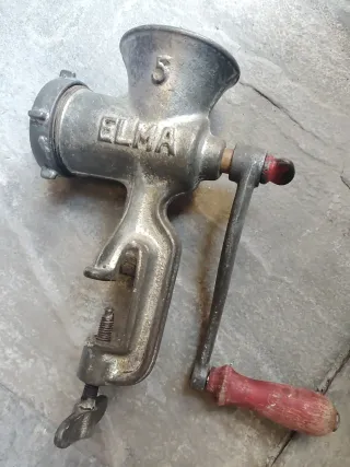 Picadora manual de carne y pasta de la marca ELMA. Ideal para preparar tus propios embutidos o pasta fresca en casa. - Fabricada en metal. - Incluye manivela con mango de madera. - Sistema de sujeción a la mesa.