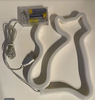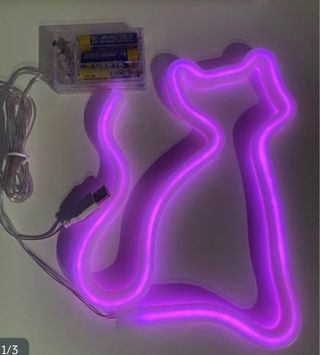 Figura decorativa con luz LED en forma de gato. - Color: Morado. - Alimentación: Pilas o USB.