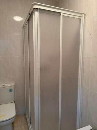 Se vende conjunto de plato de ducha y mampara. - Plato de ducha de material resistente. - Mampara con estructura metálica y paneles de cristal.