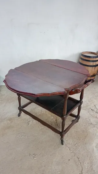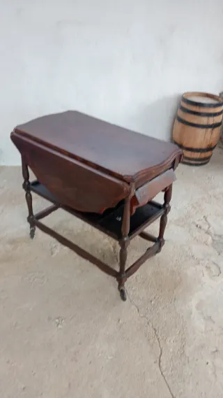Mesita auxiliar auxiliar con diseño desplegable y ruedas para facilitar su movilidad. - Estructura de madera. - Color marrón.