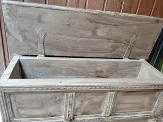 Bauh de madera con un diseño decorativo. - Acabado en tonos beige y gris. - Material de madera.