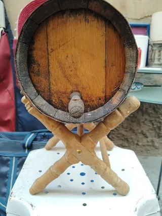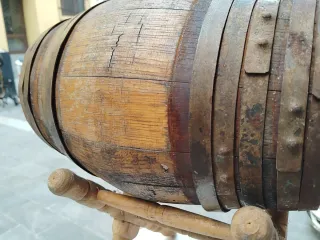 Barril de madera antiguo con pie