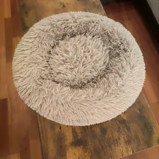 Cojín suave y acogedor para gatos. - Diseño redondo y mullido. - Material de felpa. - Color beige. - cómodo para gatos, les encanta