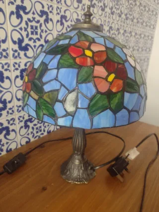 Lámpara vidrio antigua estilo Tiffany, sin bombilla. Enchufe del Reino Unido