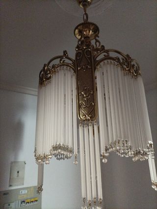 Lámpara estilo araña con cristales muy antigua , con signos de uso y alguna restauración