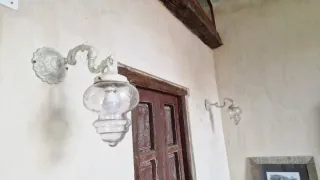 Dos lámparas de exterior en buen estado, ideales para dar un toque rústico a tu jardín. - Una farola de estilo clásico con cristal translúcido. - Un foco con reflector, perfecto para iluminar zonas específicas. - Ambos incluyen cableado para su instalación.