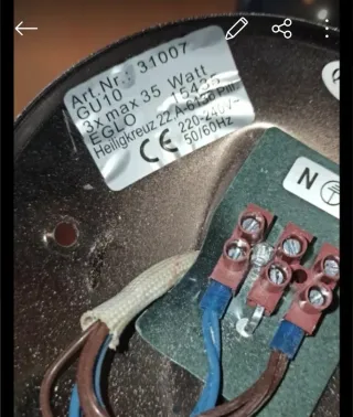 Lámpara elegante y moderna. En perfecto estado, funciona correctamente y no tienen ningún defecto. Viene con una bombilla led, habría que comprar la otra bombilla. Se cambia porque se va a poner ventiladores en toda la casa.
