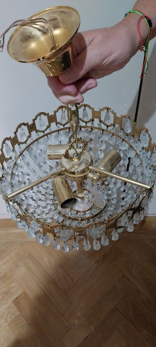 Lampara vintage de cristal de roca y metal dorado, funciona perfectamente, esta en muy bien estado. Lleva piezas sueltas adicionales por si hubiese que sustituir.