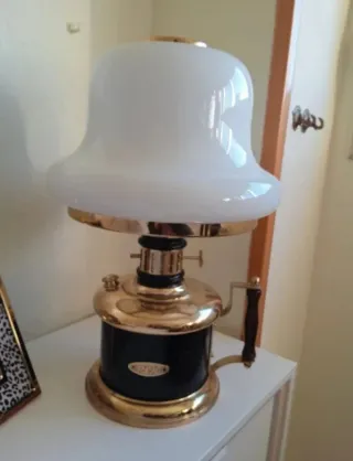 Espectacular pareja de lámparas de estilo quinqué antiguo en perfecto estado de conservación. Fabricadas en latón dorado y tulipas de cristal opalino blanco de gran calidad. Funcionan con sistema eléctrico estándar, bombilla normal e27. Diseño retro ideal para salones o dormitorios elegantes. Medidas: 50 cm de alto x 33 cm de ancho. Estado:Impecable, sin roces ni marcas. El precio indicado es por unidad. Vendo la pareja o por separado. Hago precio si compras las dos. Solo recogida local en Valdebernardo, Madrid (no se realizan envíos por fragilidad). #Vintage #Retro #LamparaOpalina #DecoracionClasica #Laton #Antigüedades #Valdeber