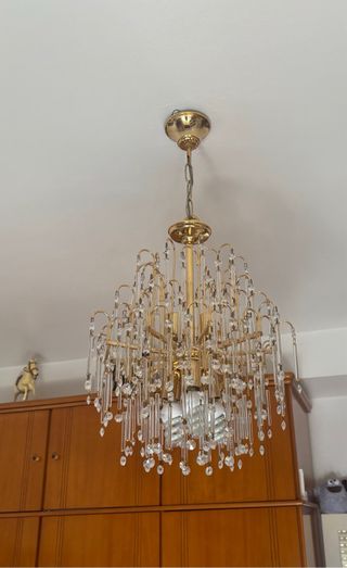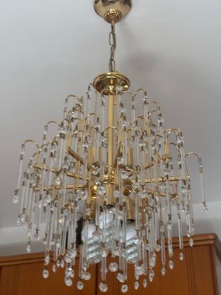 Lámpara de araña con más de 20 años de antigüedad. Funciona. No se entrega con bombilla. Todos los abalorios incluidos.