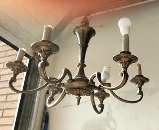 Lámpara de bronce de 8 puntos. Pendientes completos