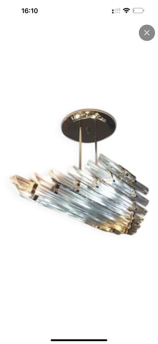 Elegante lámpara de techo estilo araña, con un diseño clásico que aporta un toque de distinción a cualquier espacio. Combina materiales de alta calidad para un acabado sofisticado. - Estructura principal en metal dorado. - Detalles y colgantes de cristal. - de los años 40-50