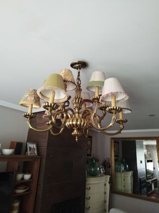 lampara salón, clásica de techo,de bronce seis brazos, está en perfecto estado.