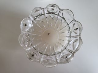 Preciosa lámpara de cristal prensado. Años 40 o 50. La tulipa está perfecta, el soporte algo deformado. En perfecto estado. Medidas: alto: 18cm diámetro: 25cm diámetro boca: 18cm diseño modular retro vintage space age colección cristal tallado soplado plomo bohemia lampara techo pared aplique luz
