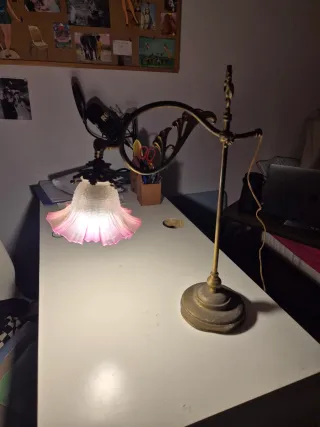 Antigua y elegante lámpara de mesa. Es preciosa pero el cristal tiene una rotura que no se ve. Se tiene que recablear.