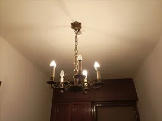Antigua lampara de bronce y cristal. Funciona perfectamente aunque hay que recolocar las velas que se hayan despegado