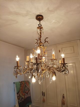 No hago envíos en esta lámpara porque es muy pesada y delicada. . Elegante lámpara antigua de bronce y cristal, ideal para dar un toque clásico a tu hogar. - Diseño de estilo vintage. - Cristales brillantes y transparentes. - Estructura de metal resistente.