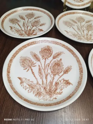 ⚠️NO NEGOCIABLE⚠️ Conjunto de seis platos llanos de cerámica con un diseño vintage. - Motivo de cardos en tonos marrones. - Borde decorativo. - Pieza de vajilla clásica. DIAMETRO 24'50 Cm. ★★SE HACEN ENVIOS POR WALLAPOP★★ GRACIAS. MUEBLES MESAS SILLAS SILLONES SOFAS DECORACION VAJILLA PORCELANA FRANCESA LIMOGES SARREGUEMINES BAVARIA LA CARTUJA DE SEVILLA COPAS VASOS CRISTAL CHINO CERAMICA CHINA JAPONES TENEDORES CUCHILLOS CUCHARAS COLECCION ANTIGUA ANTIGUO RETRO VINTAGE HOME RUSTICO LAMPARA