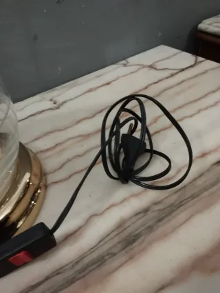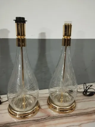 Sólo venta en persona 2 lámparas de mesa con un diseño clásico y elegante. - lamparas años 50 - Base y detalles metálicos. - Pantallas de cristal translúcido con relieve. - Incluye dos unidades. Habría que cambiar el cable