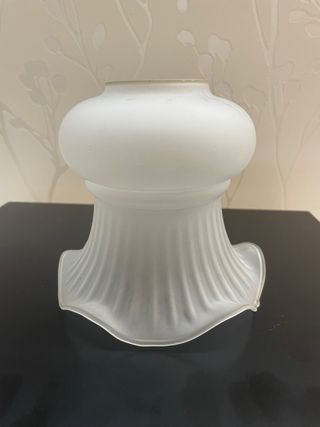 Tulipa de repuesto para lámpara, con un diseño elegante y acabado esmerilado en la parte inferior. - Material: Vidrio. - Color: Transparente y blanco esmerilado. - Diseño con detalles grabados. Dispongo de 3 unidades