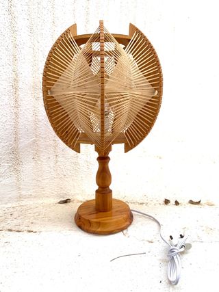 Años 60s. Diseño de tendencia escandinavo. Realizada a mano con rafia natural, entrelazada sobre sus aristas. Conservación excelente en sus cuerdas con algunos desperfectos en partes dentadas. Fotos con detalle. Medidas: tulipa 23 x 23 cm, altura con pié 38 cm. Gran surtido en artículos de tendencia retro en mi perfil. Reciclo, recupero y actualizo. Hilos cuerda mimbre bambú antiguo antigua retro nórdico natural slow deco luminaria kitsch diseño hilo ratán dormitorio mesita de noche antigüedades artesanal foco aplique interior tendencia decoración atrezzo caña bambú boho sol espejo manises murano figura latón caña slowdeco bohemio cristal