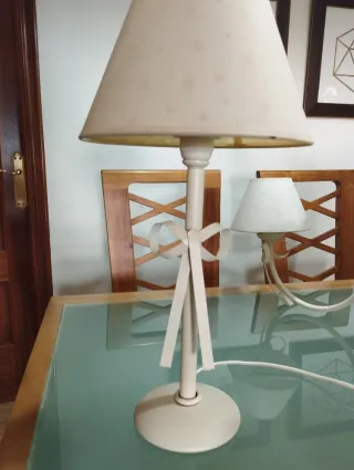 Conjunto de dos lámparas de forja con un diseño elegante. - Pantallas con perforaciones decorativas. - Acabado en color beige y detalles en negro. Se venden juntas 10 euros las dos o por separado 6 euros cada una