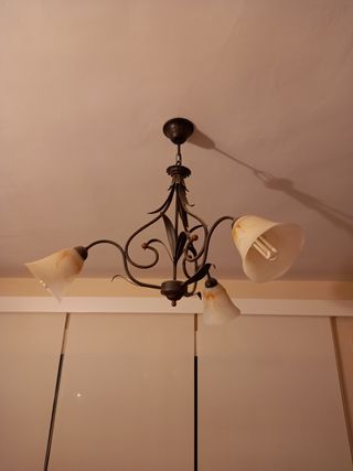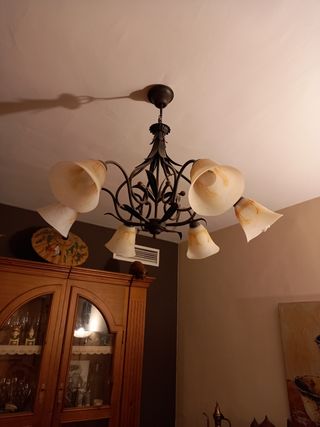 lamparas de forja con tulipa 9 brazos 5 brazos 3 brazos se venden juntas 40€ o por separado precio algo negociable pregunta sin compromiso
