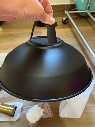 Lámpara negra de forja, la tulipa mide 28 centímetros de diámetro, está nueva, a estrenar.