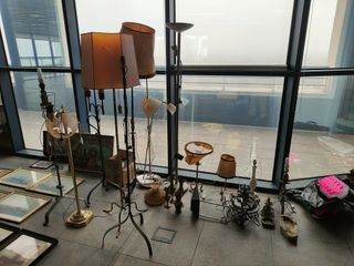 Vendo lote completo por vaciado/mudanza. Conjunto variado de iluminación, decoración y menaje, ideal para casa, segunda residencia, local, atrezo o restauración. Incluye (según fotos): Varias lámparas de pie (diferentes modelos) y lámparas de mesa con pantallas. Apliques/candelabros de pared (metal/forja) y estructura tipo araña/candelabro de hierro forjado. Portavelas/candelabros en metal/latón (varias piezas). Cristalería y vajilla: platos, fuentes, cuencos, vasos/copas (lote grande) + caja de tazas de cristal tipo Duralex (y similar). Objetos decorativos: figura de caballo, ...