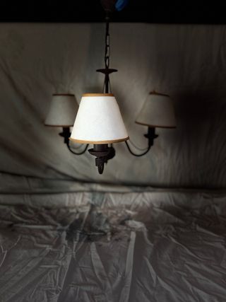 Lámpara de forja con tres brazos. Es bonita y sencilla, queda bien en cualquier estancia.