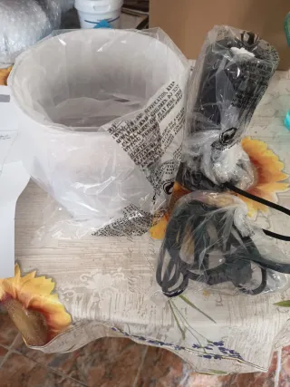 Elegante lámpara de mesa con forma de jarrón, fabricada en cerámica, el cuello y la base son de color negro y el cuerpo blanco con suaves y delicados tonos nacarados según incide la luz en ella (en las fotos no se aprecia apenas). Lámpara de diseño moderno y versátil, funcional y decorativo ideal tanto para entrada, salón y dormitorio. En perfecto estado de conservación, sin golpes ni arañazos, instalación eléctrica en perfectas condiciones, pantalla y bombilla no incluidas. Comprada en El Corte Inglés. Medidas: 52 cm alto x 24 cm diámetro (la medida es sin la pantalla, con ella aumenta a 71 x 40)