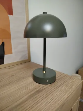 Nueva por 20€ y las dos por 35€ Elegante lámpara de mesa con un diseño moderno y un acabado en tono verde grisáceo. - Base cónica. - Pantalla semiesférica. - Fabricada en metal.