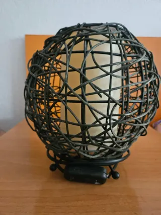 Lámpara de hierro. Está como nueva, solo que se cortó una vez el cable y se sacó de la estructura y no pudimos volver a colocarlo. Ahora mismo es meramente decorativa, pero alguien manitas seguro que la puede volver a dejar operativa.