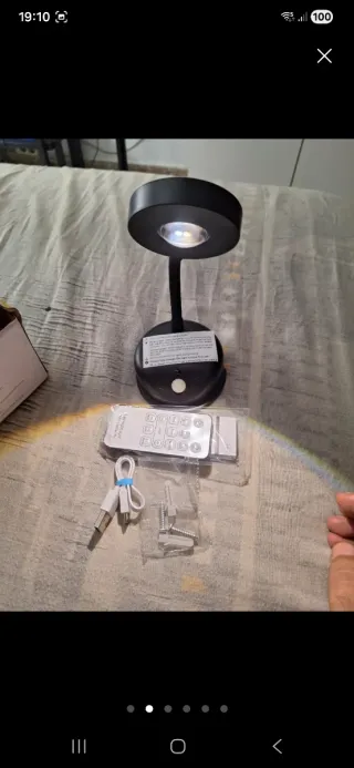 Lámpara de mesa moderna con luz LED y control remoto para ajustar la iluminación. - Diseño elegante y funcional. - Incluye cable de carga USB. - Control remoto para mayor comodidad.