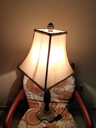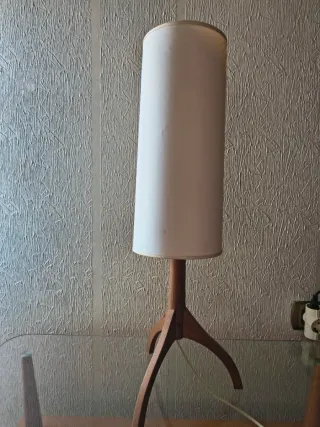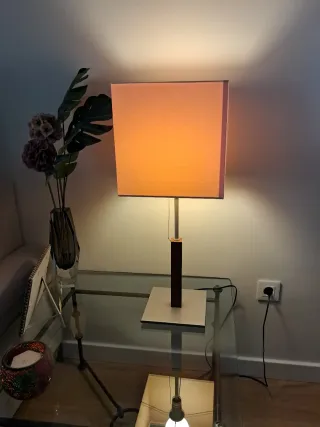 Aporta un toque cálido y acogedor a tu hogar con esta lámpara de mesa. - Diseño artesanal con estructura de madera. - Pantalla de papel (ver deterioro) - Iluminación ambiental cálida .