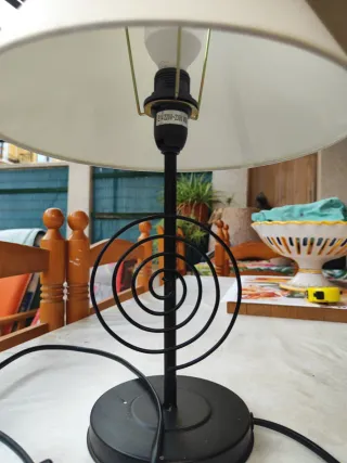 Lámpara de mesa con un diseño moderno y llamativo. - Forma cónica con bandas. - Base cilíndrica. - Cable de alimentación incluido.