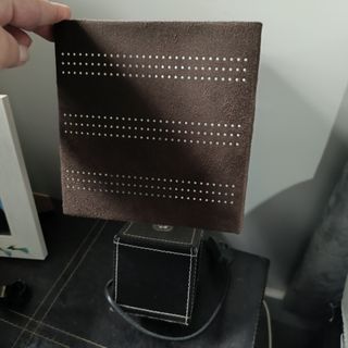 Preciosa lampara de mesa, ideal para una mesita de noche. Es de estilo moderno y elegante. - Tiene una base cuadrada de cuero negro. - La pantalla es cuadrada de ante marrón. - Presenta un diseño con pequeños detalles decorativos.