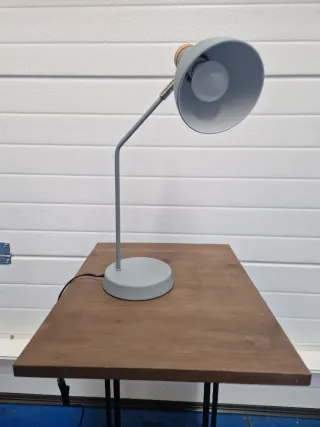 Lámpara de mesa con un diseño industrial y funcional. Perfecta para cualquier escritorio o mesita. - Brazo articulado para ajustar la posición. - Base redonda y estable. - Pantalla cónica. - Cable de alimentación incluido.
