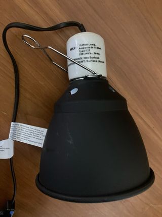 Lámpara reflector UV de aluminio para terrarios de la marca Exo Terra. Diseñada para proporcionar luz UV a reptiles. - Diámetro: 14 cm / 5.5 - Máximo bombilla CFL: 26W - Máximo bombilla incandescente: 75W - Emite luz UVB x2 De regalo la bombilla aunque tiene 3 meses de uso y el casquillo esta amarillento. VENTA EN LOGROÑO/BILBAO